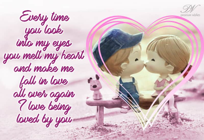Every time you look into my eyes you melt my heart and make me fall in love all over again. I love being loved by you – Love Card