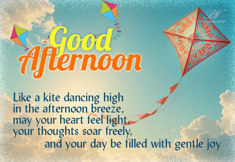 Good Afternoon - Like a kite dancing high in the afternoon breeze, may your heart feel light, your thoughts soar freely, and your day be filled…