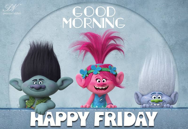 Good Morning – Happy Friday Friends – Enjoy. Send this happy friday good morning greeting card with cartoon characters to your friends and family. It will surely bring a smile on their lips.