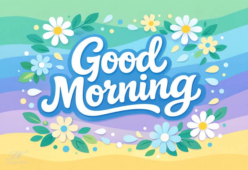 This Good Morning greeting is filled with cheerful colors, soft florals, and positive energy — a gentle reminder to start the day on a happy note.
