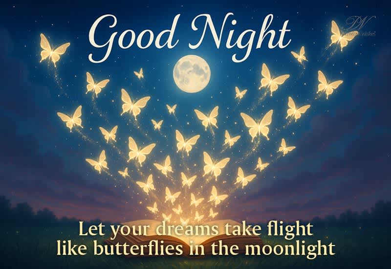Good Night - Let your dreams take flight like butterflies in the moonlight