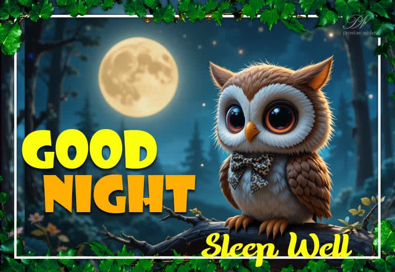 Featuring a cute owl, a glowing moonlit background, and a warm Sleep Well message, this Good Night owl greeting is perfect for sharing peaceful night wishes with family, friends, and loved ones.