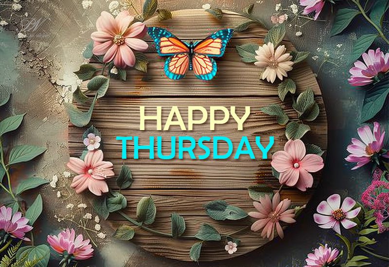 This Thursday wishes card is perfect for sending to friends, family, coworkers, and loved ones who enjoy floral and nature-inspired greetings. The butterfly and wooden centerpiece give it a graceful and creative look, making it ideal for social media posts, messages, and daily sharing.