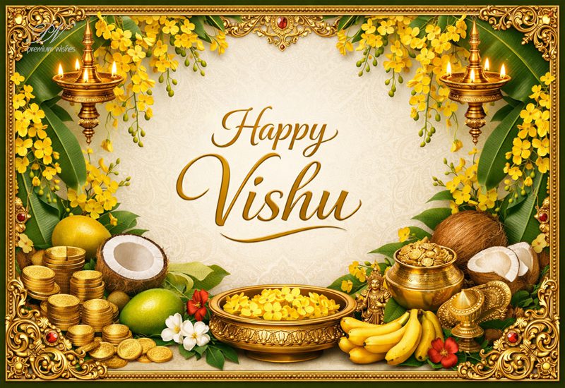 Happy Vishu Wishes with Golden Festive Elegance and Prosperity