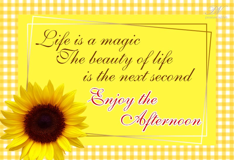 Life is a magic, the beauty of life is the next second – enjoy your afternoon