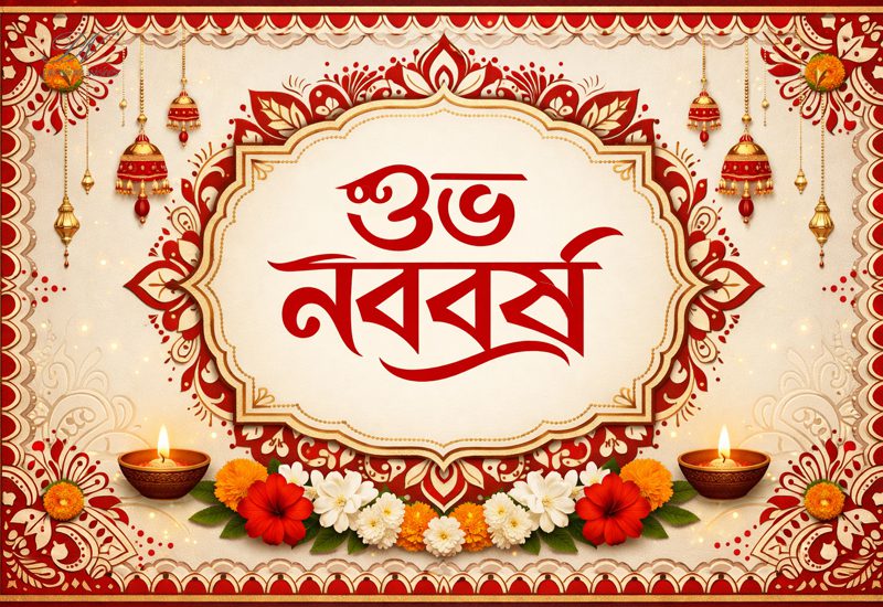 If you are looking for a decorative and elegant Subho Noboborsho card to spread happiness, peace, and prosperity, this design is a lovely one to share.