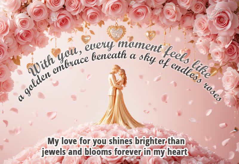 With you, every moment feels like a golden embrace beneath a sky of endless roses. My love for you shines brighter than jewels and blooms forever in my heart